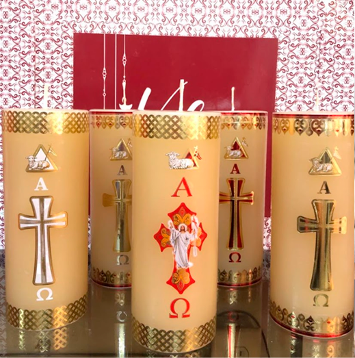 Cirios de diferentes diámetros y alturas, de varias composiciones, cera de miel, parafina, soja, etc.